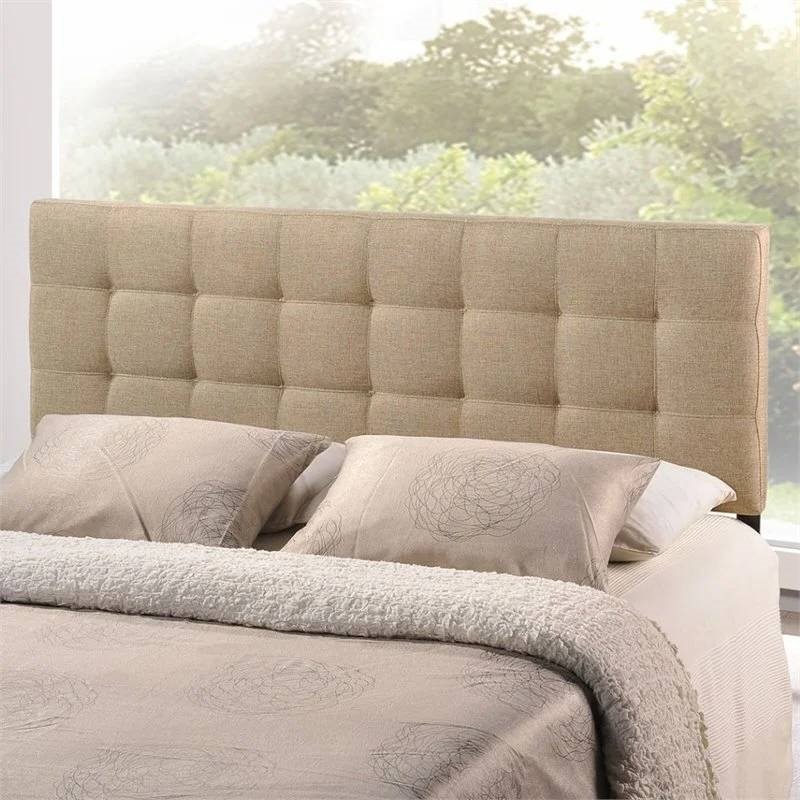 Full size Modern Beige Tan Taupe Fabric Tufted Upholstered Headboard